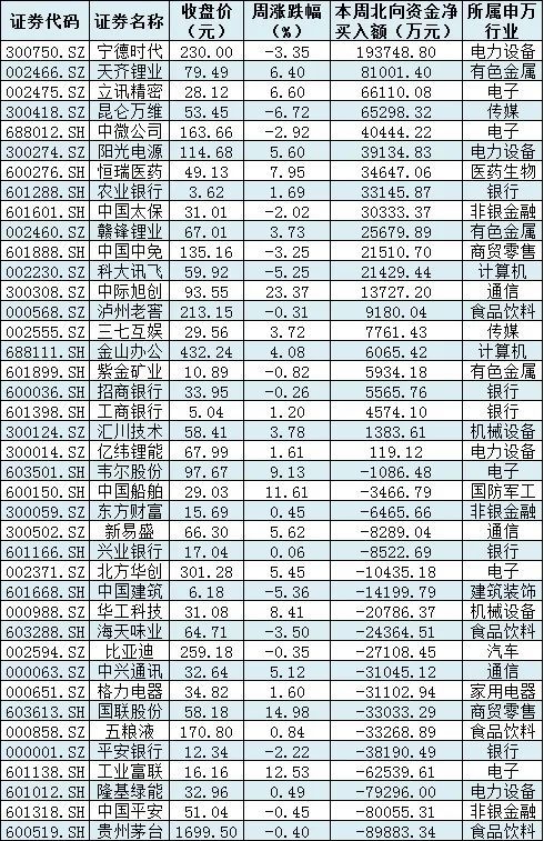 资金方面,周五(5月19日),北向资金净卖出金额达22.26亿元。本周,北向资金累计净卖出金额达16.91亿元,从前十大成交活跃股来看,宁德时代、天齐锂业、立讯精密、昆仑万维等4只个股北向资金净买入金额均超6亿元。另外,贵州茅台、中国平安、隆基绿能等个股遭北向资金净卖出金额均超7亿元。
