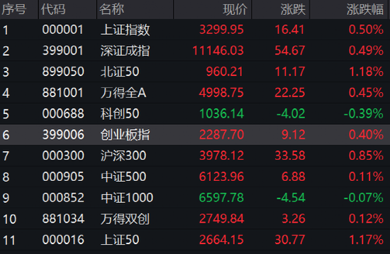 5月22日上午,上证指数低开0.15%,深证成指跌0.07%,创业板指微涨0.01%。开盘后,上证指数震荡走高,盘中一度收复3300点。截至发稿,A股各主要指数红多绿少,上证50涨超1%。