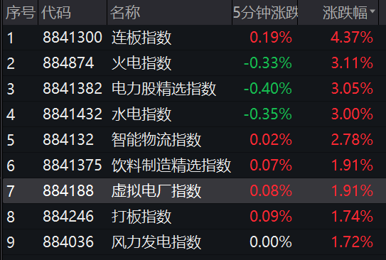 值得关注的是,上午一众虚拟电厂概念股发力明显,众智科技实现20CM涨停,迦南智能、亿能电力、安科瑞等涨超10%。