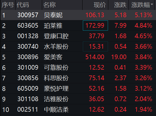 美容护理板块上,贝泰妮、珀莱雅、爱美客等权重股具有较好表现。