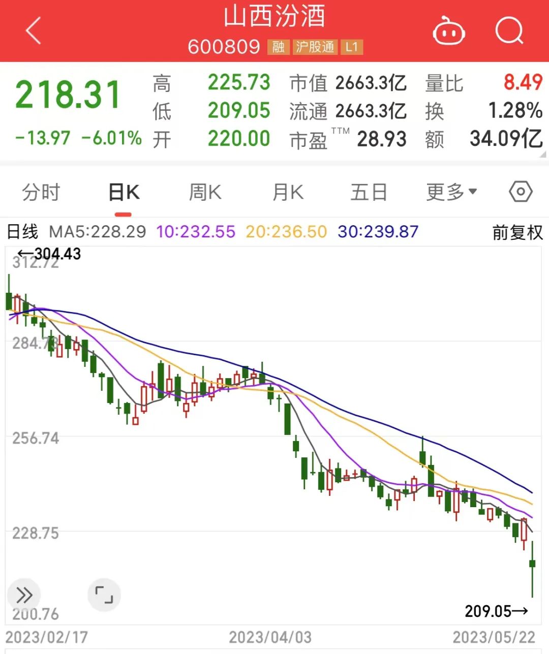 早盘白酒板块中,仅山西汾酒和*ST皇台(维权)股价下跌。山西汾酒早盘一度触及跌停,随后跌幅收窄;截至收盘,该股跌6.01%。