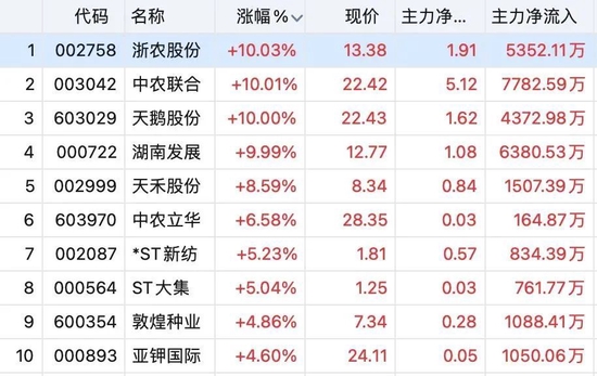 此外,供销社概念股活跃,浙农股份、中农联合、天鹅股份、湖南发展涨停。