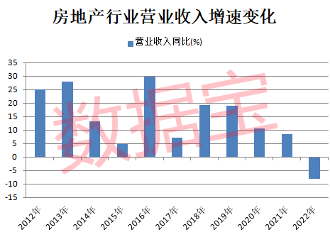 从A股房地产行业整体业绩来看,2022年度地产行业遭遇历史上罕见的大幅下滑现象。数据宝统计,2022年A股房地产公司合计营收2.76万亿,同比下滑8.21%,营收增速创2000年以来最低水平;行业净利润合计亏损774.19亿元,是该行业2000年以来首次亏损。