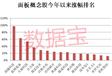 证券时报·数据宝统计,今年以来面板上市公司整体市场表现可圈可点。截至5月22日收盘,概念股平均涨幅达到11.91%,跑赢同期上证指数5.2个百分点。清越科技、联得装备、天禄科技、合力泰、锦富技术涨幅排在前五位。