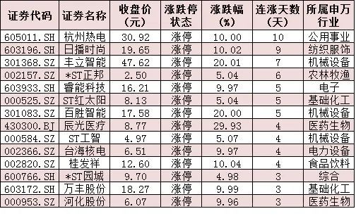 表:连续上涨4日且今日收盘涨停个股情况