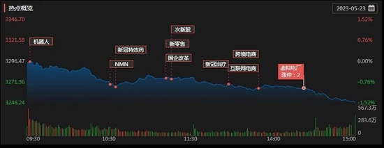 5月23日,在市场震荡回落中,医药股成为了最大亮点。从申万一级行业看,今日仅有医药生物行业实现上涨,涨幅达0.36%,新冠药、生物疫苗、ST板块等活跃。保险、银行、券商板块集体下挫,传媒、电力、半导体、建筑、酿酒等板块均走低。传媒、非银金融跌幅均超2%。