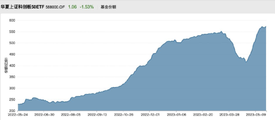 今年以来,场内资金持续流入科创板相关ETF,华夏科创50ETF规模从年初仅500亿元出头涨至目前的606.24亿元,规模位居股票ETF第二名,仅次于华泰柏瑞沪深300ETF。