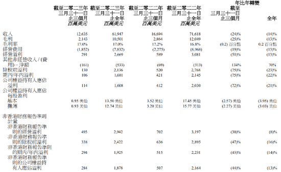 公司公布截至2023年4月30日的2022/23财年全年及第四财季业绩:营收同比减少24%至126.35亿美元,净利润同比下滑72%至1.14亿美元。公司披露,将于2023年8月10日派发截至2023年3月31日止年度的末期股息每股0.3港元。