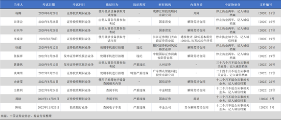 或许因为参考的“基数”较大,中基协的考试虽然通过率接近半数,违纪处罚同样是“黑压压”一片。