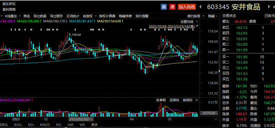 5月25日,安井食品收盘价为161.96元/股,当日股价下跌1.37%,总市值475亿元。5月以来,安井食品股价下跌4.66%。2023年一季度,安井食品被156只基金持有,占流通股比例为15.82%。