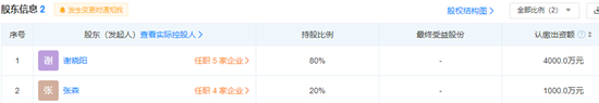 据天眼查,天演资本目前有两大股东,即谢晓阳和张森,持股比例分别为80%和20%,前者早期曾在Tibra Capital任职,后者创立天演前曾是华创证券研究员。