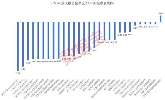 此外,上周获得场外资金青睐的证券主题基金表现也差强人意,国泰中证全指证券公司ETF、华宝中证全指证券ETF等几只证券主题ETF回报率均在-2.5%以下。