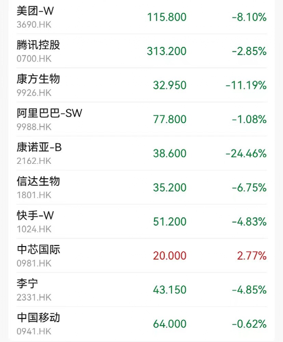 另一方面,生物技术股下挫,康诺亚重挫逾24%,康方生物跌超11%,药明生物跌超2%。