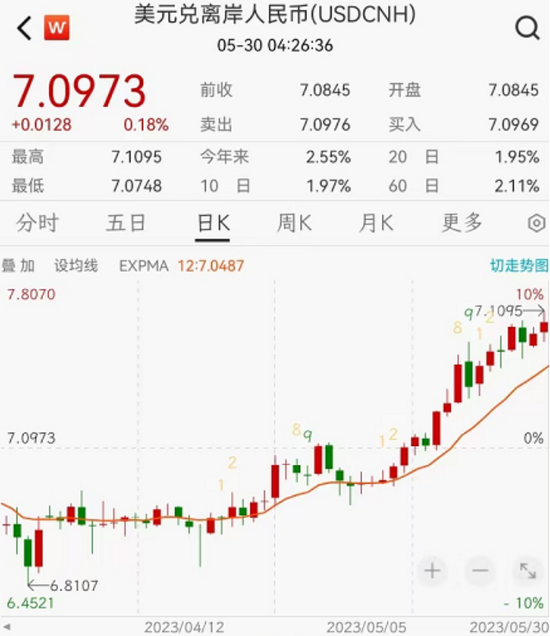 人民币汇率持续走弱,创去年11月以来低位。离岸人民币今早跌穿7.1水平,截稿时回到7.1关口内。