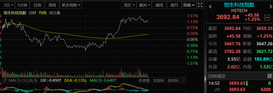然而,就在大家失去信心的时候,市场的变化来了。上午大跌近1%的恒生指数午后快速反弹,恒生科技指数的弹性更足,午后反弹一度超过1.5%。