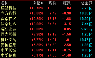 截至发稿,深桑达A、瑞斯达康、同为股份等涨停。