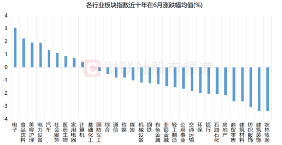 注:各行业板块指数近十年在6月涨跌幅均值(2013年至2022年)