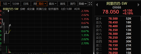 今天早上,据Wind资讯,阿里巴巴股票通过大宗交易以每股77.9港元成交2070万股,这部分股票的市值超过了16亿港元。今天早盘,阿里巴巴股价表现较为淡定。