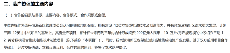 5月31日,中芯先锋与绍兴滨海新区管理委员会签署了《落户协议》,有意在滨海新区谋求更大发展,计划在三期12英寸中试项目基础上,实施量产项目,预计在未来两到三年内合计形成投资222亿元、10万片/月产能规模的中芯绍兴三期12英寸数模混合集成电路芯片制造项目。