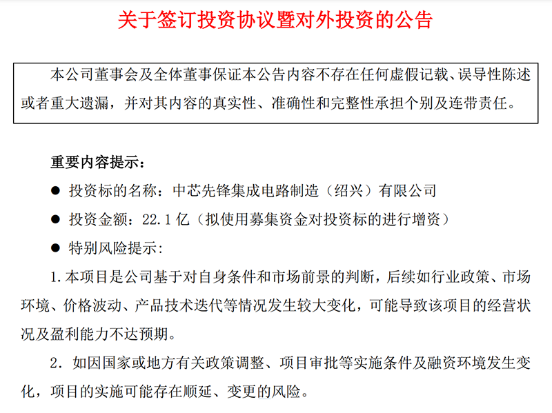 中芯集成拟222亿元扩产