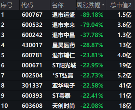 需要注意的是,年报已经披露完毕,有些上市公司的年报被审计机构出具非标,按规定是要退市的。因此最近市场上开始出现越来越多的退市和临近退市的股票,这些股票有的存在退市整理期,退市整理期首日不受涨跌幅限制,周跌幅甚至接近90%。