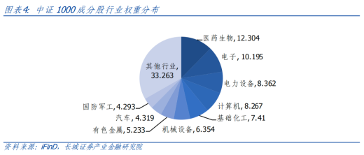 从中证1000成分股行业分布上看,中证1000作为宽基指数,覆盖了几乎所有的中信一级行业,自指数发布以来,第一大行业集中度均未超过 13%,前四大行业集中度未超过 43%,分布较为均衡,可有效把握各个板块地投资机会,长期配置价值凸显。(资料来源:长城证券,2023.04.13)