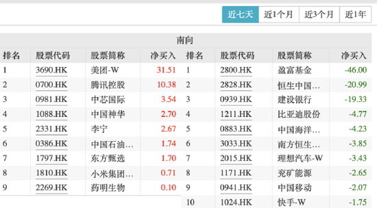 截至6月5日,过去七天,美团-W吸引资金净流入31.51亿港元,腾讯控股吸引资金净流入10.38亿港元。近7天,盈富基金等则遭遇南向资金抛弃。