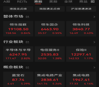 6月5日,港股反弹。三大股指全线上涨。其中恒生指数收于19108.50涨0.84%,恒生国企收于6463.90点,涨0.55%,恒生科技收于3840.77点,涨0.43%。大市成交额999.01亿港元。