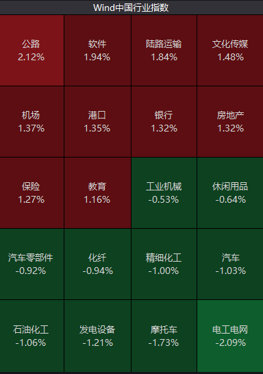 盘面上,房地产早盘上攻,传媒板块继续保持近期热度,交通运输、公路、机场等相关概念走高;新旧能源接连走低,汽车、发电设备等表现欠佳。