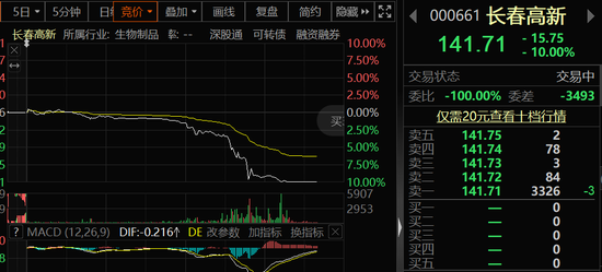 值得一提的是,今天又出现了大白马长春高新闪崩(此前市值近700亿元)的情况,该股午后闪崩跌停。