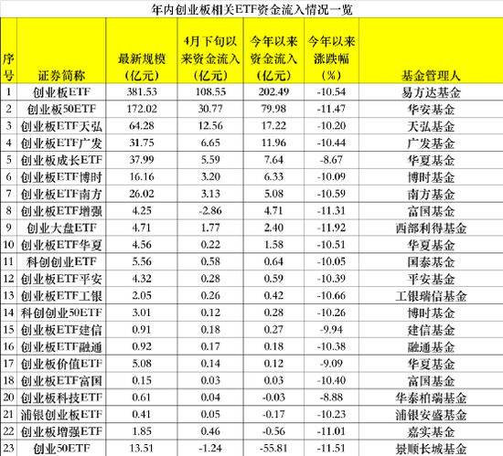 值得注意的是,创业板指数从今年4月下旬开始持续下挫,接连刷新年内新低,但创业板相关的ETF产品合计“吸金”近290亿元。