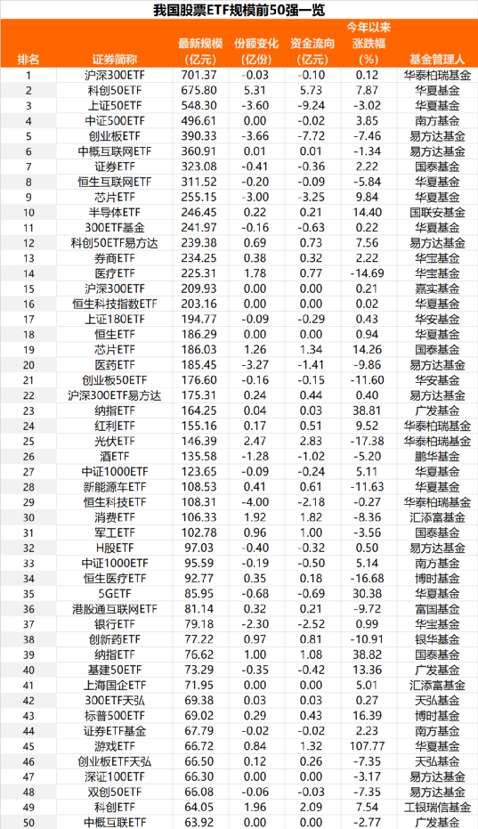 上证50ETF、芯片ETF、银行ETF资金净流出居前