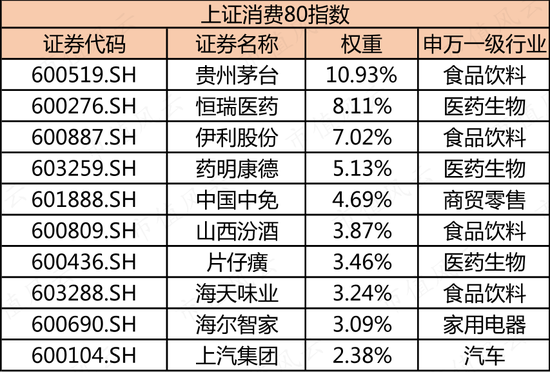 同时,申万一级行业分类下,除食品饮料占35.5%外,医药生物、汽车也占了很大权重,合计为44.1%。