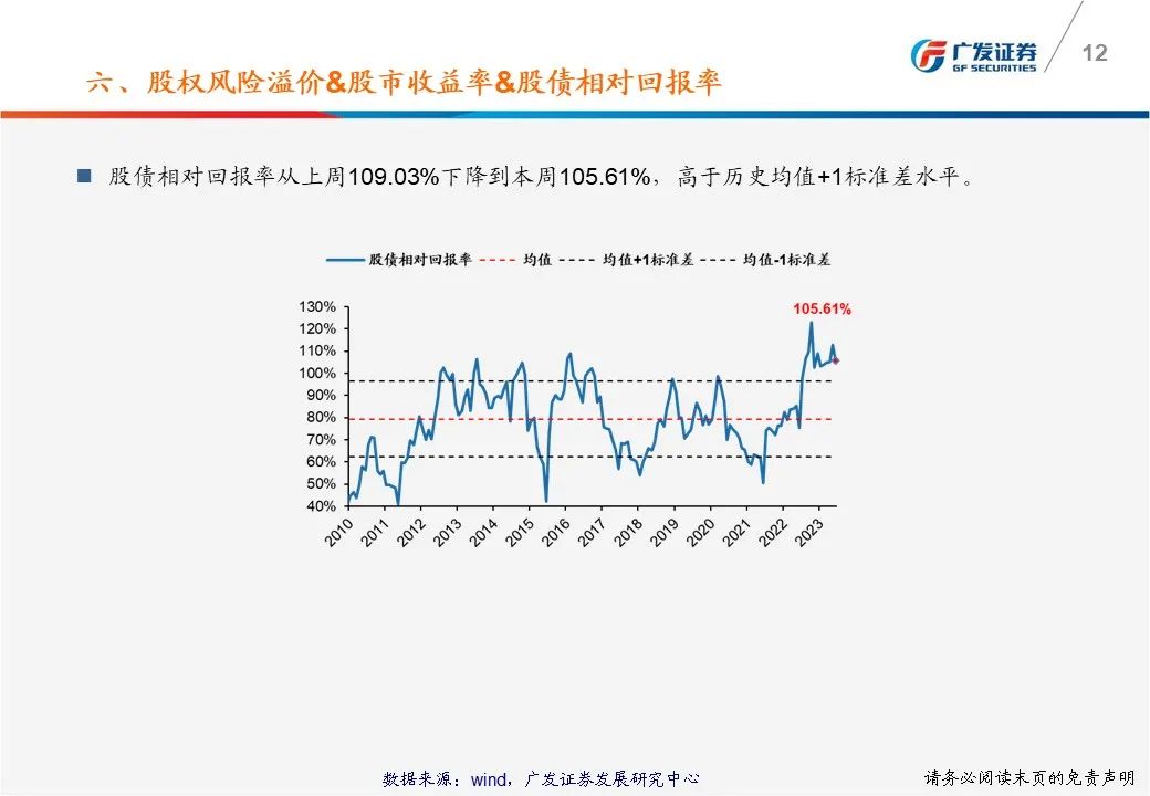 (6)股权风险溢价从上周0.98%下降到本周0.92%,股市收益率从上周3.67%下降到本周3.57%。