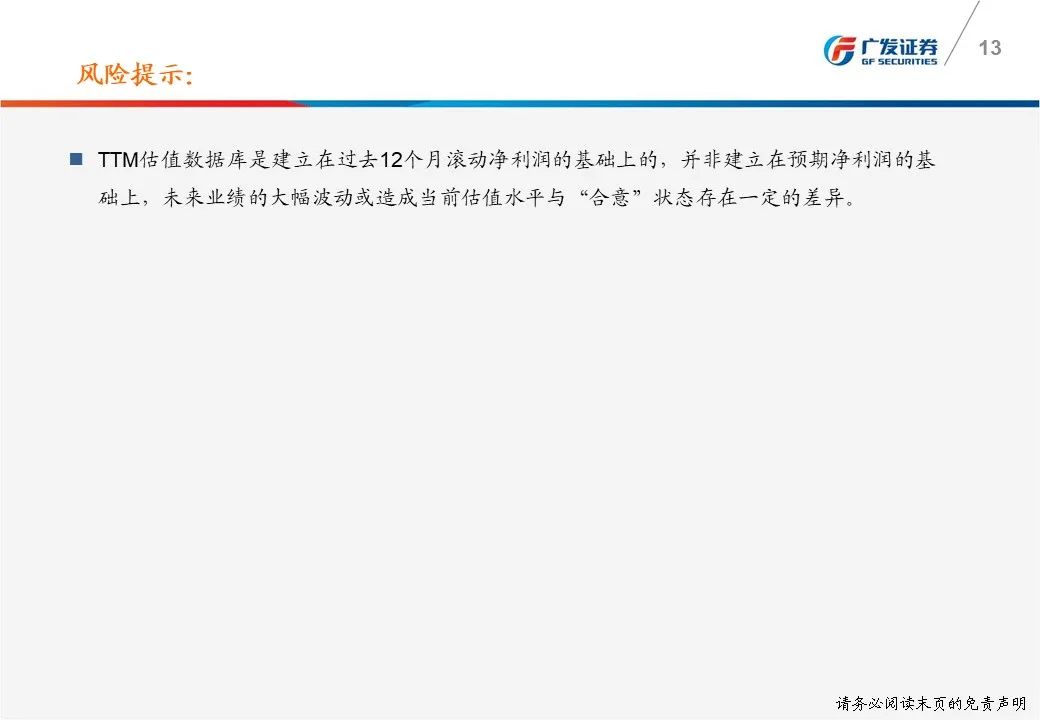 TTM估值数据库是建立在过去12个月滚动净利润的基础上的,并非建立在预期净利润的基础上,未来业绩的大幅波动或造成当前估值水平与“合意”状态存在一定的差异。