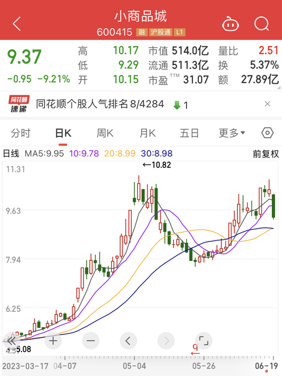今年以来,受“一带一路”、“中特估”、消费复苏等利好影响,小商品城股价持续走高。截至上周五收盘,该股年内股价累计上涨98.44%。对于早盘忽然跌停的原因,股吧里大量投资者纷纷热议,大多认为是“618”数据不够理想,但也缺少实锤。