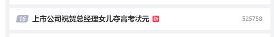 在上市公司官微发布高管子女喜报实属罕见,该微信在发布后迅速引起网友关注,阅读很快冲上10万+,同时,也上了微博热搜。