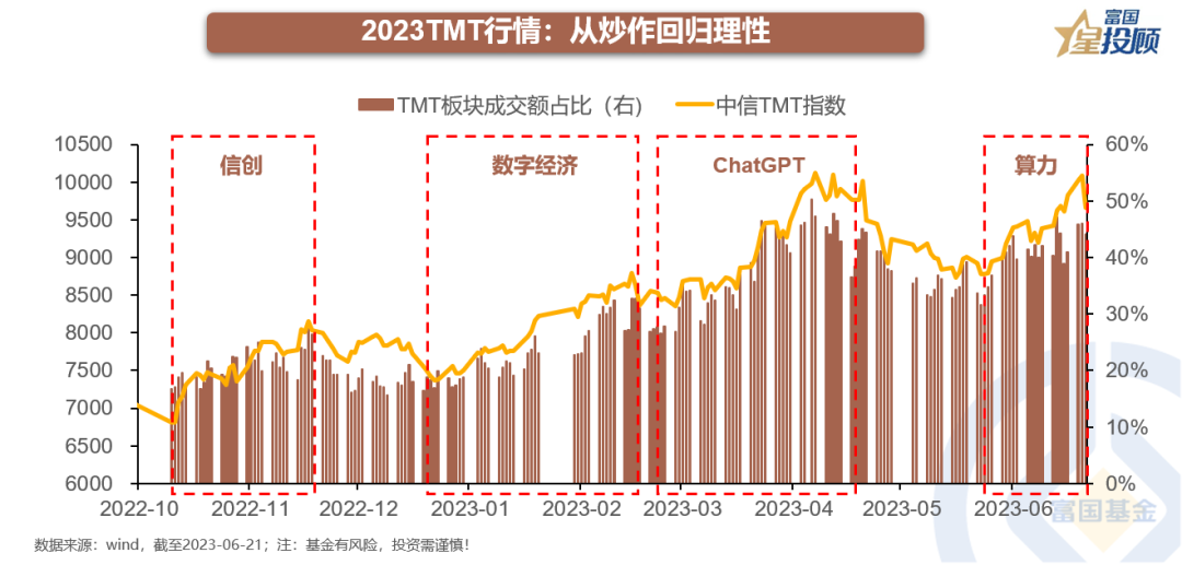 站在当前位置,随着估值提升和交易拥挤度提升,TMT板块面临阶段性过热,高波动在所难免;但成长板块估值和拥挤度从不是核心,仅对短期的行情给出参考性的判断。2023年TMT业绩释放为大概率事件,有望支撑TMT行情行稳致远,其中AI算力产业链和下游应用创新的投资机会值得关注。