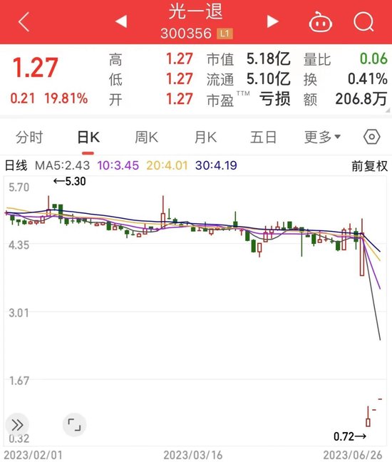 市场退市整理期的第2个交易日,光一退(维权)股价一字涨停。除光一退外,目前有16只股票处于退市整理期,今日涨停的还有必康退(维权),该股也连续收获2个涨停板。易尚退、银河退(维权)、奇信退(维权)、和佳退(维权)、深南退等涨超2%。