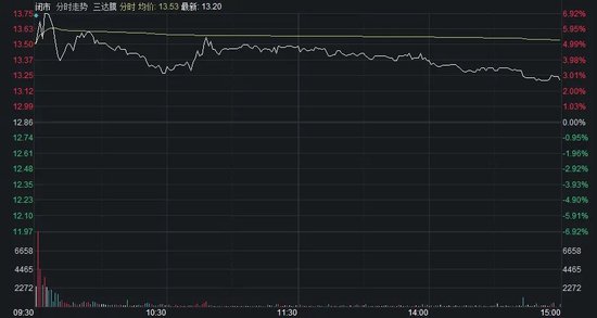 假期喜提热搜后,A股上市公司三达膜一度涨近7%,涨幅至收盘有所回落,股价上涨2.64%,报收13.2元/股。