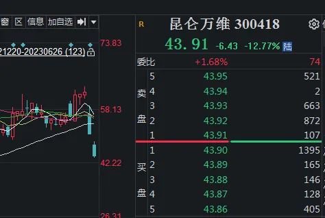 昆仑万维继上周20CM跌停后,今日早盘一度大跌近14%。