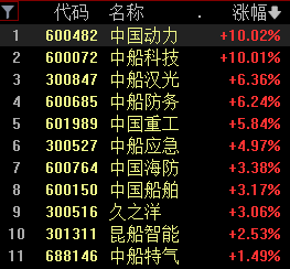 中船系今日高歌猛进,中国动力、中船科技涨停,中船汉光、中船防务涨超6%,中国重工涨近6%,中船应急涨近5%。
