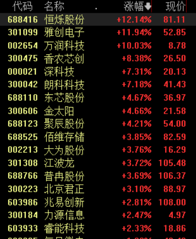 6月29日,存储芯片概念大幅高开,领涨两市。截至发稿,万润科技涨停,恒烁股份、雅创电子、香农芯创等涨幅居前。