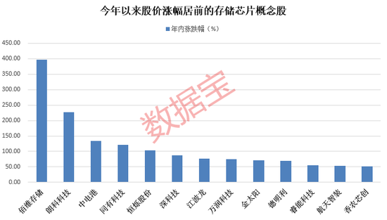 证券时报·数据宝梳理,A股中,存储芯片概念股今年以来平均上涨40.69%,佰维存储、朗科科技、中电港、同有科技、恒烁股份5股的股价年内涨幅均超100%,股价实现翻倍上涨。
