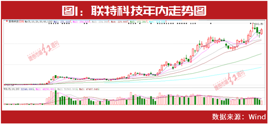 随着AI行情的活跃,一众相关概念公司集体走强,联特科技年初以来累计涨幅接近600%(见图1),鸿博股份、剑桥科技、中际旭创、曙光数创等公司,年内的阶段涨幅也均超过了400%。