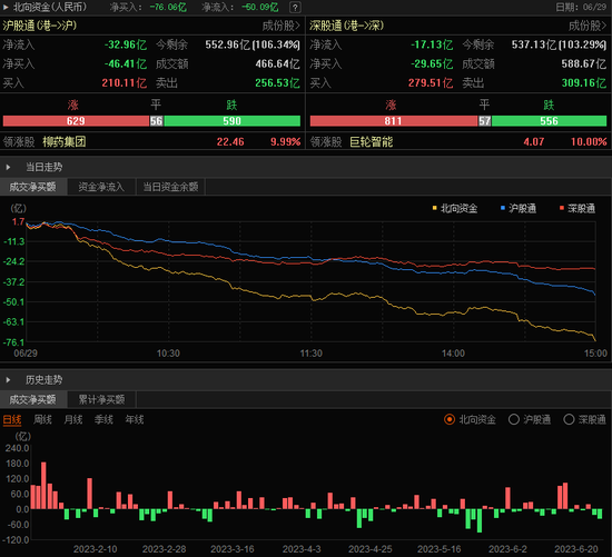 北向资金净卖出76.06亿元