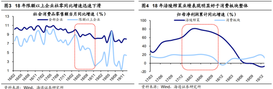 往前追溯,2018年也曾出现过消费降级被市场高度关注的现象。2018年中国经济出现下行压力,消费景气度下滑,社零当月同比增速由3月高点的10.1%下滑至11月低点的8.1%,并且限额以上企业回落更加明显,由9.0%下降至2.1%。微观层面,A股消费板块归母净利累计同比增速由18Q1的18.8%降至18Q4的-4.7%;然而涪陵榨菜作为价格相对较低的日常食品,其18年归母净利同比增速达59.8%,显著优于消费整体。在此背景下市场上关于中国消费降级的讨论越来越多,以至于商务部、发改委出来发声,表示消费的品牌、方式、观念均在升级,服务消费扩大、食品支出占比下降,消费降级与事实不符。事后也有数据证明中国消费依然处在大的升级趋势中,2018年仅是短期波折,例如随着国内消费复苏,19-20年以白酒为代表的消费行业表现尤为亮眼。