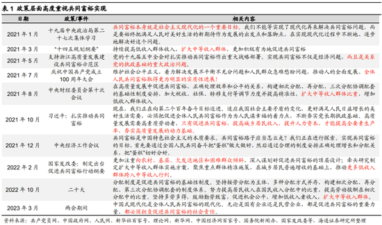 共同富裕背景下收入结构改善有望驱动消费不断升级。国家近年来屡次出台重要文件和指示,明晰共同富裕重要地位,扎实推进共同富裕的实现。2021年10月习近平总书记在《求是》杂志上发表了重要文章《扎实推进共同富裕》,鲜明指出共同富裕是社会主义的本质要求,是中国式现代化的重要特征。2021年3月的国新办发布会上,发改委曾明确表示推进共同富裕要“以缩小城乡区域发展差距和收入分配差距为主攻方向”,再次明确共同富裕实现的两个重要路径。