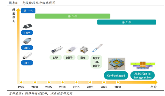 方正证券研究认为,AI(人工智能)高算力传输需求驱动数据传输速率朝向400G、800G及更高演进。CPO技术将成为2024年800G模块规模化应用的重要技术路径。