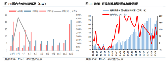新能源车产业链上,下游需求Q2在政策支持下销量企稳回暖,5月新能源乘用车零售低基数下同比增长61%,下游电池环节在盈利能力提升及同比量增下表现预计维持韧性,而材料业绩预计则受损于价格下滑同比偏弱。